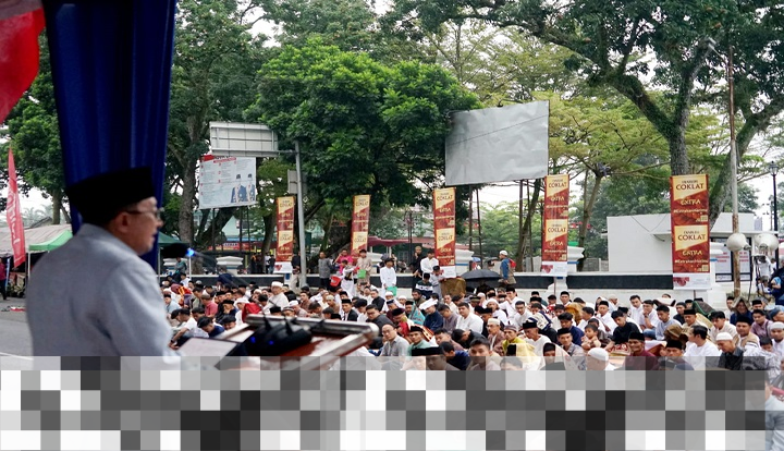 Meski Diguyur Hujan, Ribuan Jamaah Tetap Khusyuk Shalat Id di Tanah Datar